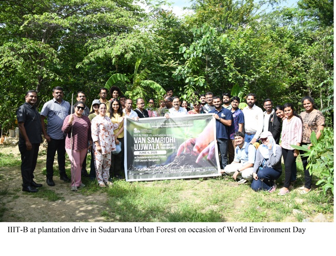 Bengaluru, June 06, 2025: In celebration of World Environment Day, the International Institute of Information Technology Bangalore (IIIT-B) organized a plantation drive at HSR Layout, Bengaluru, in Sudarvana Urban Forest. This transformative initiative reflects the Institute’s commitment to environmental sustainability and community-driven ecological restoration.