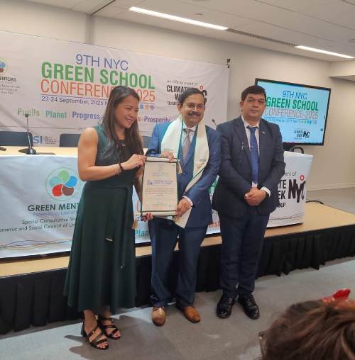 Bangalore, September 26, 2025: The International Institute of Information Technology Bangalore (IIIT-B) has once again garnered international recognition for its unwavering commitment to sustainability. Prof. Debabrata Das, Director of IIIT-B, received the prestigious Global Green University Award on behalf of IIIT-B during the Green School Conference 2025, hosted at the ILR School, Cornell University, New York.