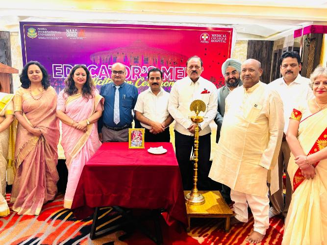 The event was graced by Col (Dr) Zahid Siddiqui, Director General, Axis Colleges, Kanpur, who served the event with his auspicious presence as the Chief Guest. He said, “The urgent need to align values with vision in education, and praised such forums for encouraging collective responsibility in shaping young minds.” He also emphasized that the backbone of any progressive society is its education system, and gatherings like these play a crucial role in encouraging collaboration, innovation, and inspiration across institutions. I appreciated the efforts of Noida International University and NIIMS for organizing such a thoughtful initiative that recognizes educators as true nation builders.”